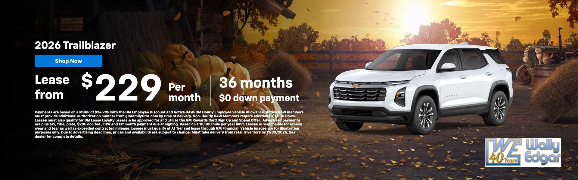 #Payments are based on a MSRP of $25,095 with the GM Employee Discount, GM Lease Loyalty & be approved for and utilize the GM Rewards Card Sign Up and Spend Offer. Advertised payments are plus tax, title, plate, $250 doc.fee., CVR and 1st month payment due at signing. Based on a 10,000 mile per year limit. Lessee is responsible for excess wear and tear as well as exceeded contracted mileage. Lessee must qualify at A+ tier and lease through GM Financial. Vehicle images are for illustration purposes only. Due to advertising deadlines, prices and availability are subject to change. Must take delivery from retail inventory by 03/31/2026. See dealer for complete details.